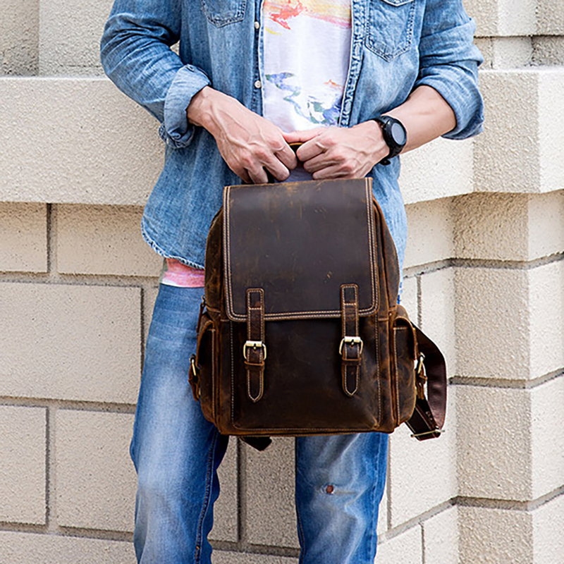 A premium Crazy Horse leather men’s backpack built for comfort, durability, and timeless retro style.