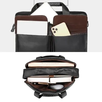 It features a spacious interior for documents and a padded section for laptops, making it ideal for commuting, meetings, and business trips. Durable stitching, rich cowhide texture, and a solid shoulder strap ensure long-lasting performance and timeless elegance.