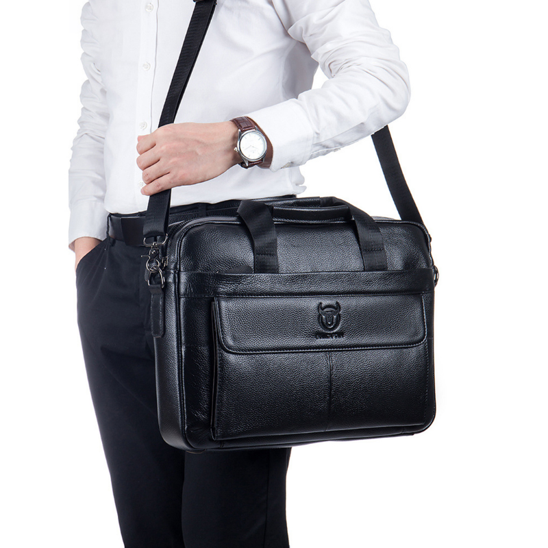 Make a bold statement of professionalism and style — choose this genuine leather laptop briefcase to carry your workday essentials with confidence.