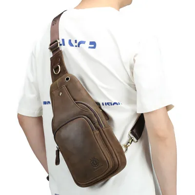 Experience timeless craftsmanship with this Genuine Leather Top-Grain Cowhide Crossbody Chest Bag, made for those who value quality and style. Designed in a European and American retro look, it combines rugged charm with modern functionality.