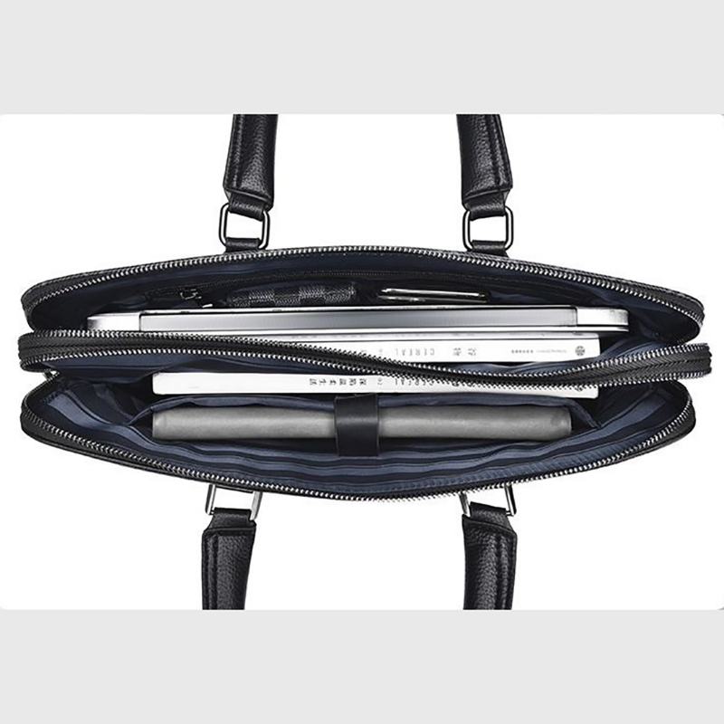 The bag features double zipper compartments for secure and organized storage — making it perfect for carrying a laptop, documents, and daily office essentials. With refined stitching and splicing details, it brings sophistication to your daily commute or business travel.