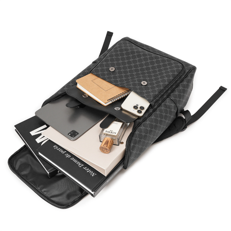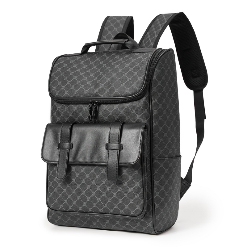 A spacious, waterproof, and stylish backpack designed for modern men on the go.