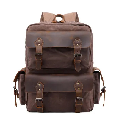 Upgrade your travel style with this Retro Crazy Horse Leather & Wax Canvas Travel Backpack, a perfect blend of vintage charm and rugged functionality. Designed for men who value durability and sophistication, this bag is crafted from premium waxed canvas and Crazy Horse cowhide leather, ensuring long-lasting performance.